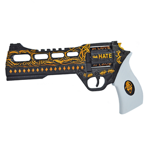 Spud now presents to you, Suicide Squad Harley Quinn's revolver! Harley used her gray metal bat to fight the Arkham Asylum security guards, but she replaced it with Joker's mallet. Choose from The Joker, Harley Quinn, the Batmobile, or Panda!