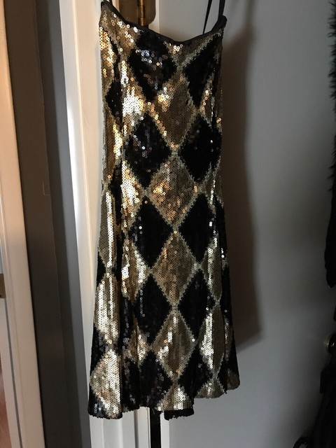 It is a low-cut dress with spaghetti straps and features a diamond checkered design in gold and black. From ChinaBrand: HandmadeTheme: Harley QuinnStyle: Complete Outfit. Harley Quinn DIY Costume for Barbie dolls from Suicide Squad #DIY #harleyquinn #suicidesquad.
