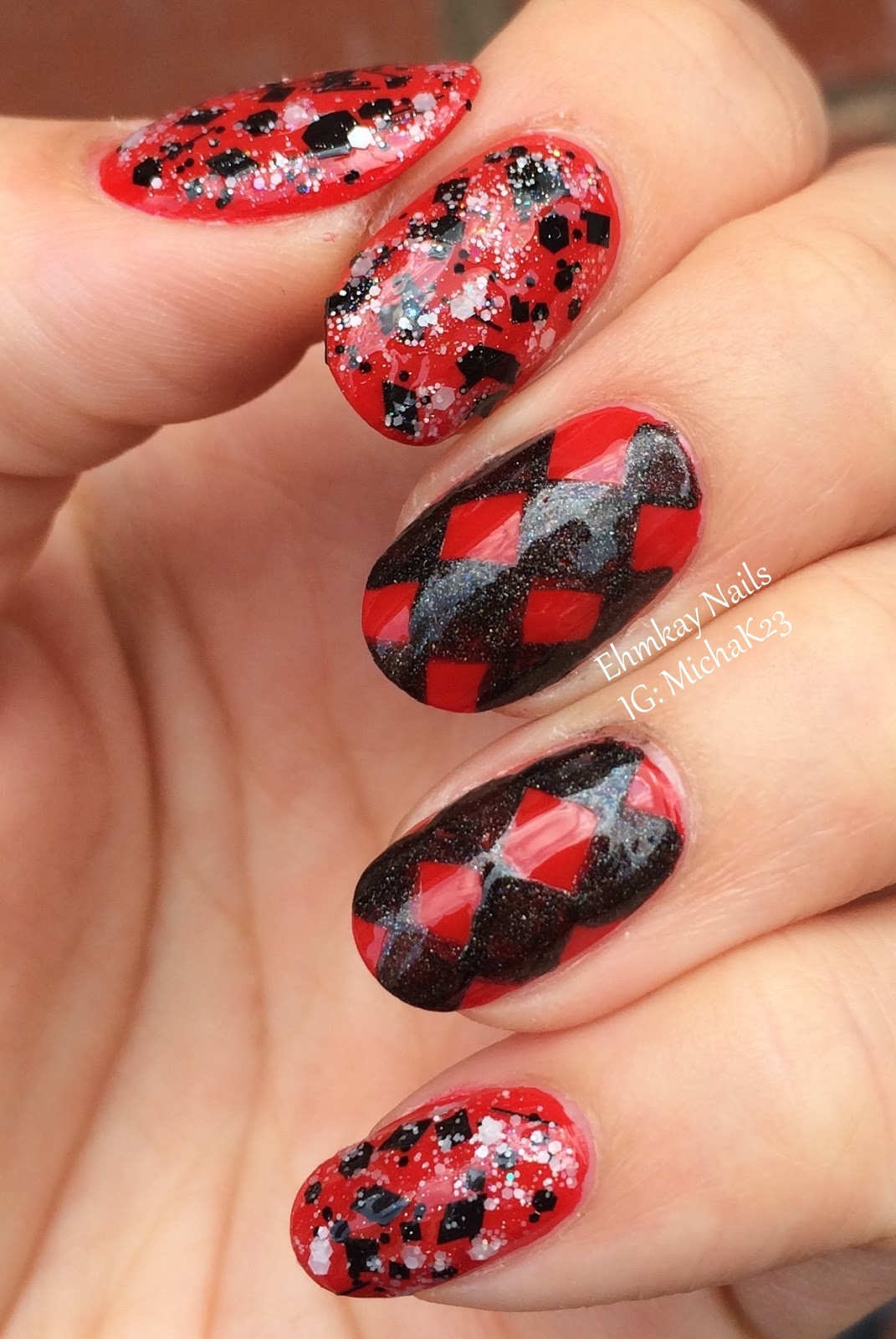 Harley Quinn Nails. Some harley quinn inspired nails At first i was going to do them all like the thumb but i wanted to go a little more I will be doing these for my harley quinn cosplay on saturday for the london MCM expo. Harley Quinn may do some crazy things for love, but it's all just to put a smile on her puddin's face.